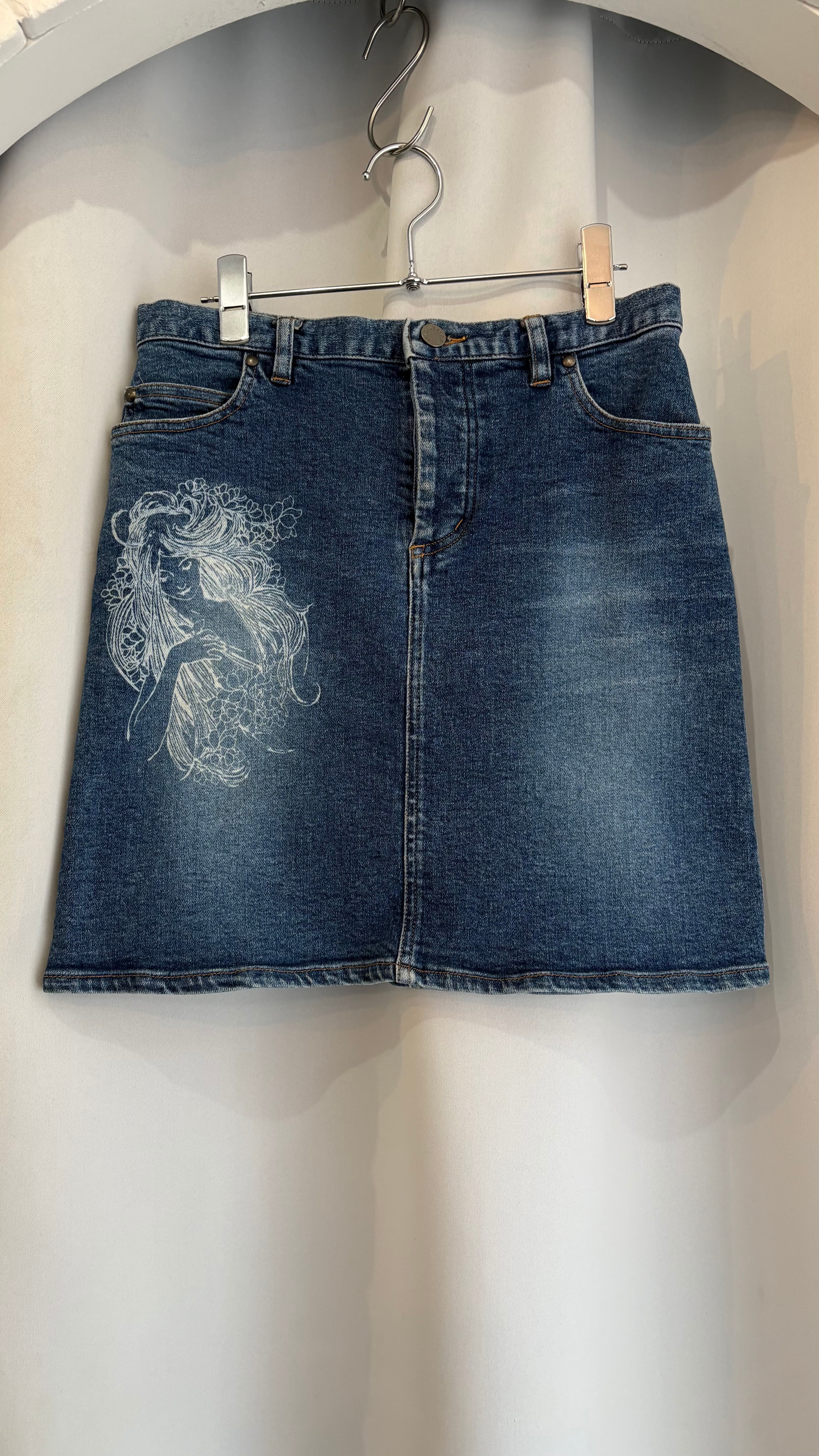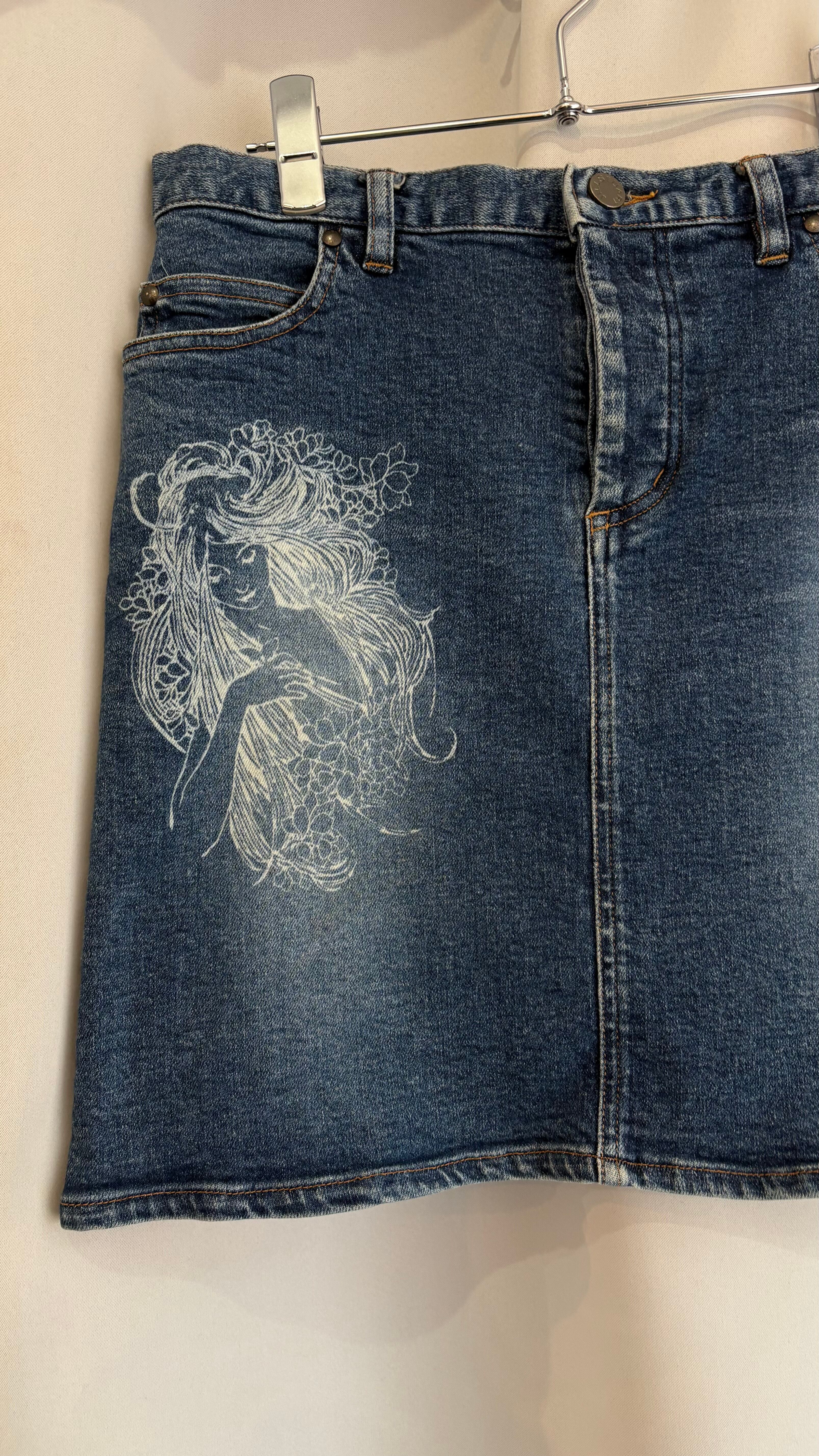 ''JILL STUART" print medium denim skirt