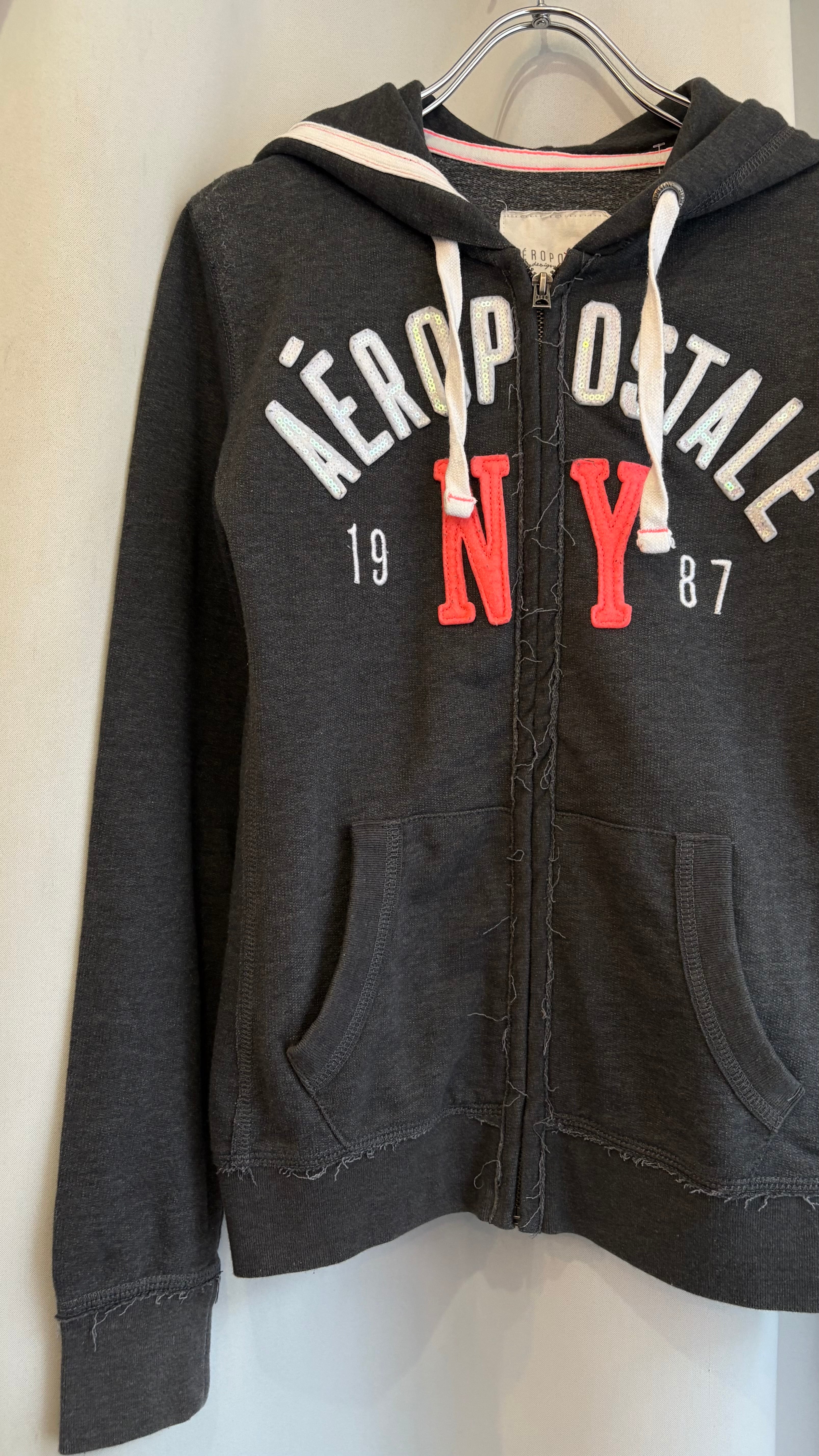 spangle logo damage zip hoodie