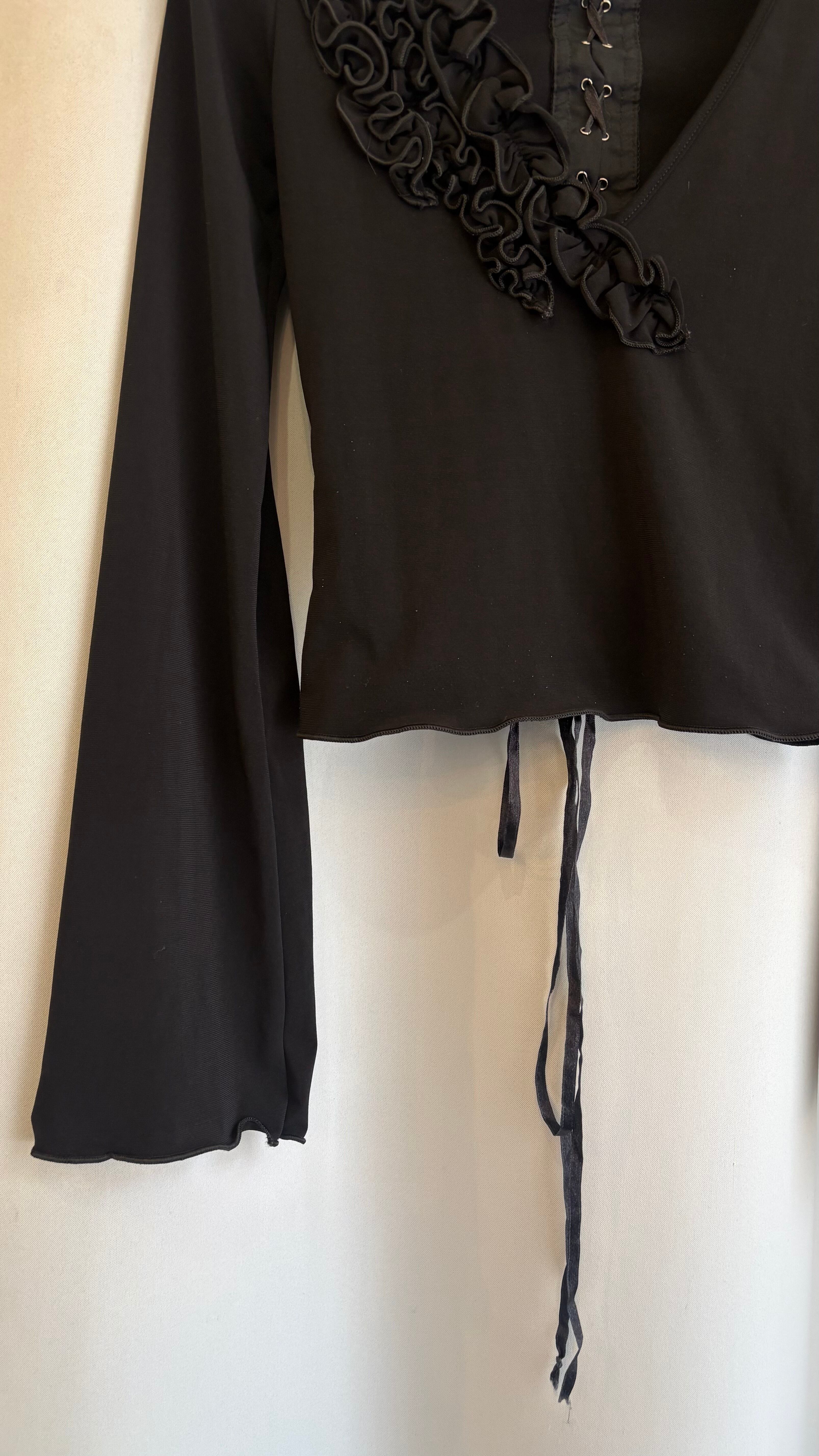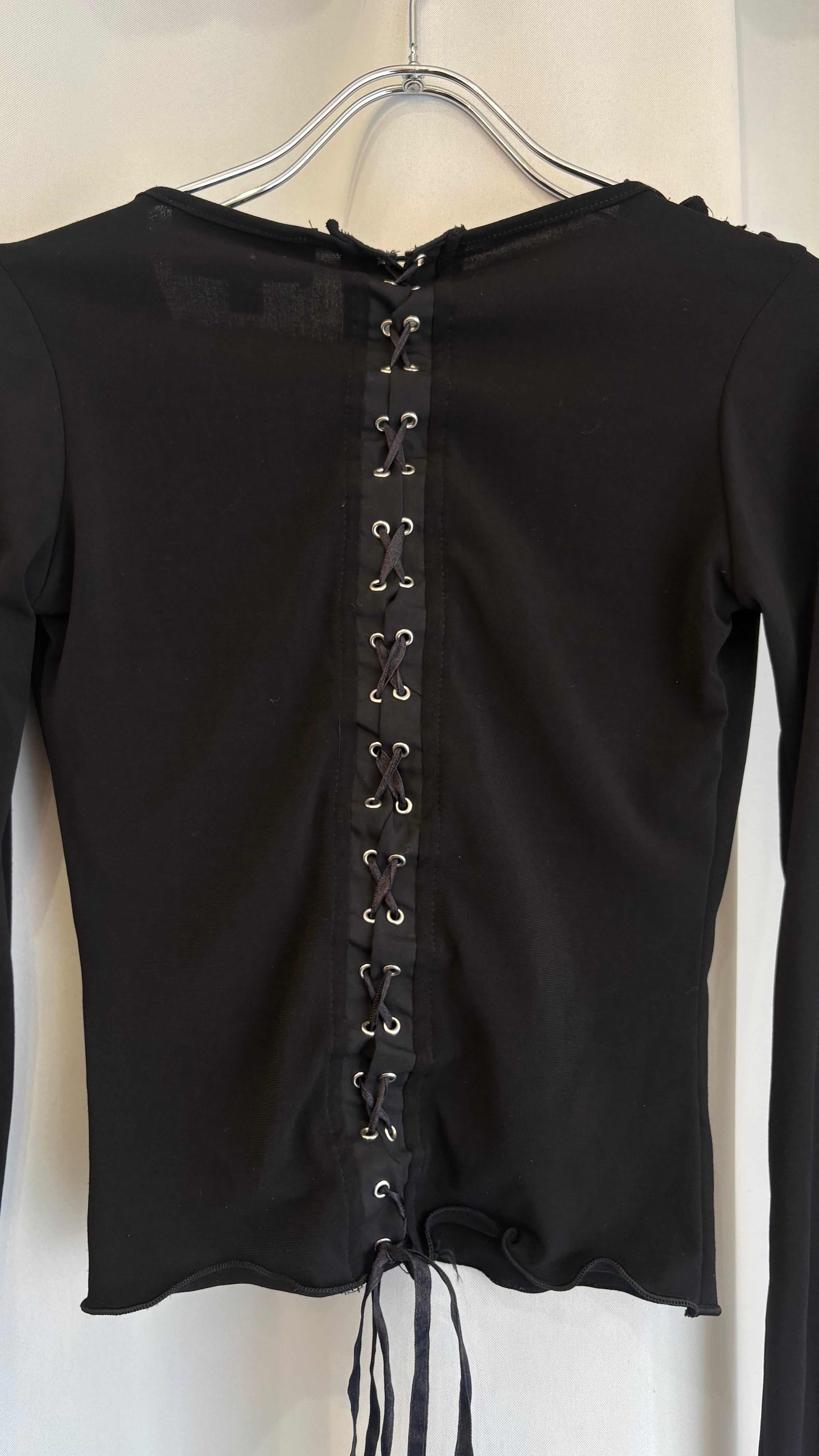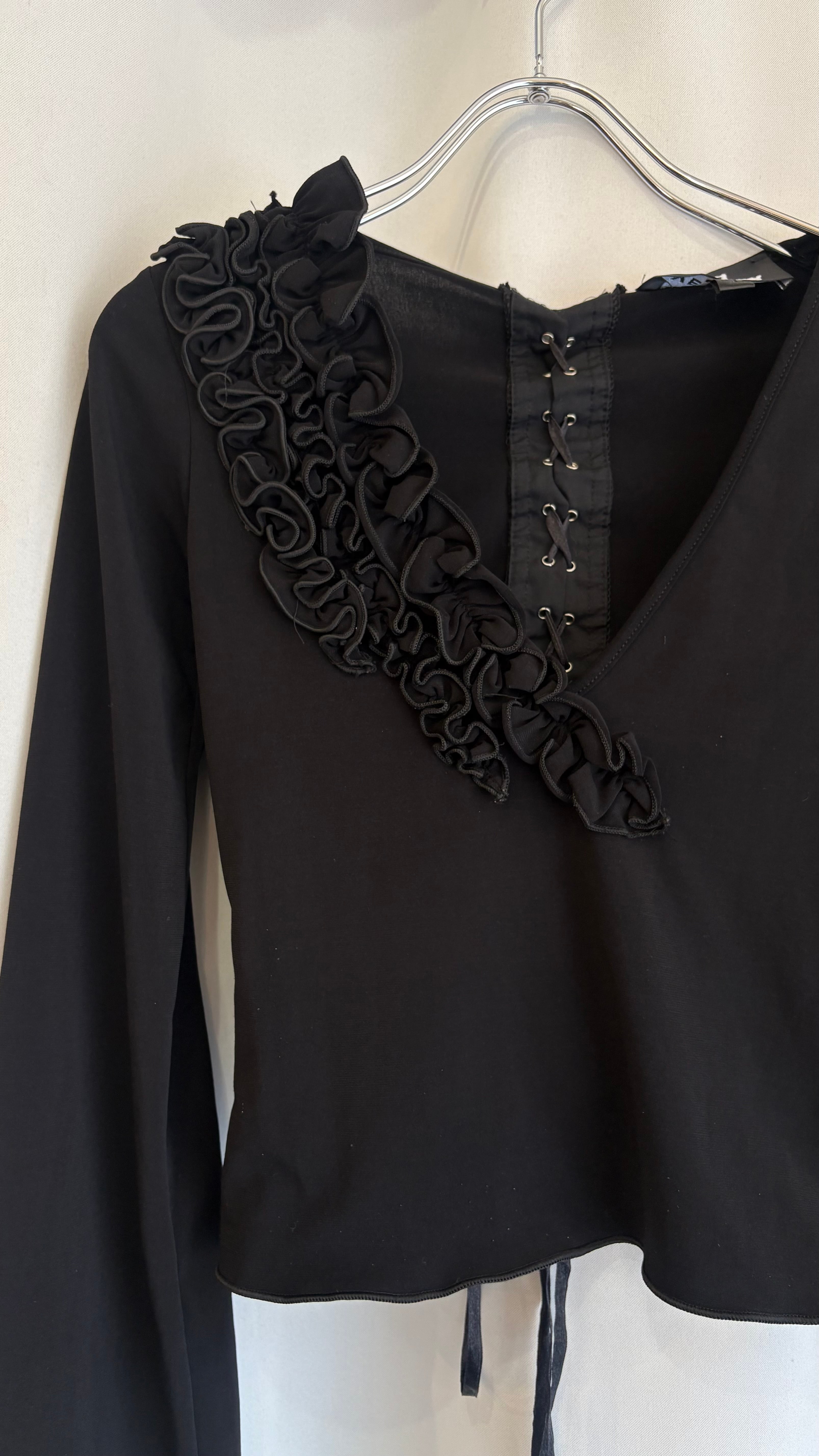 back lace up frill collar tops