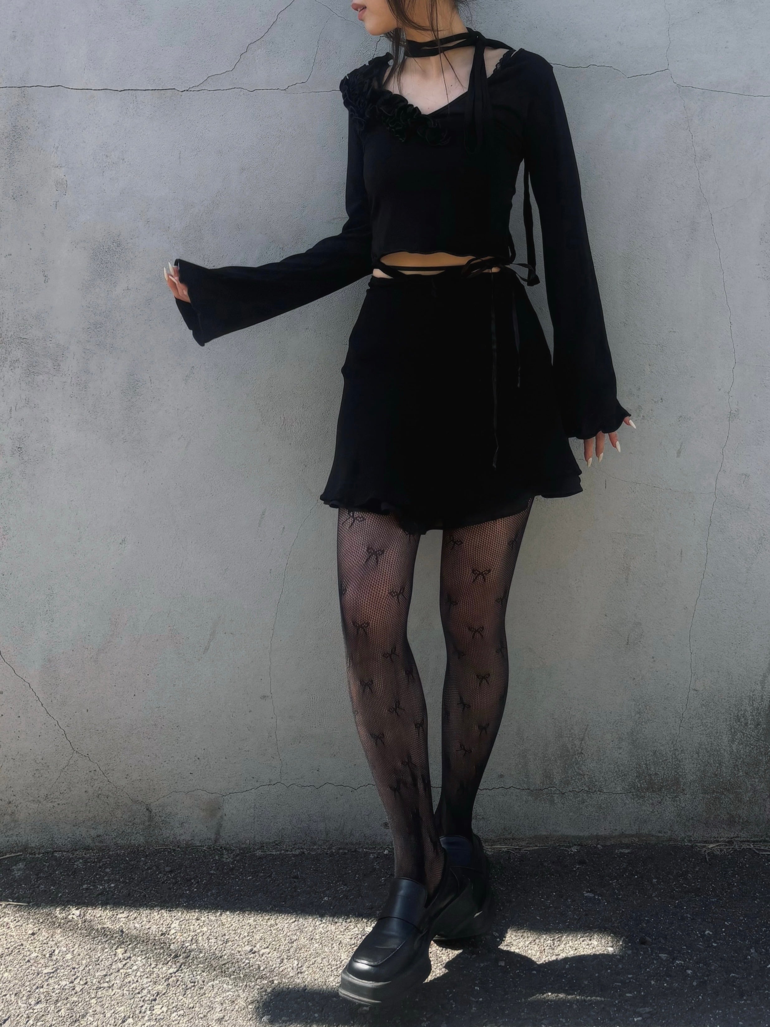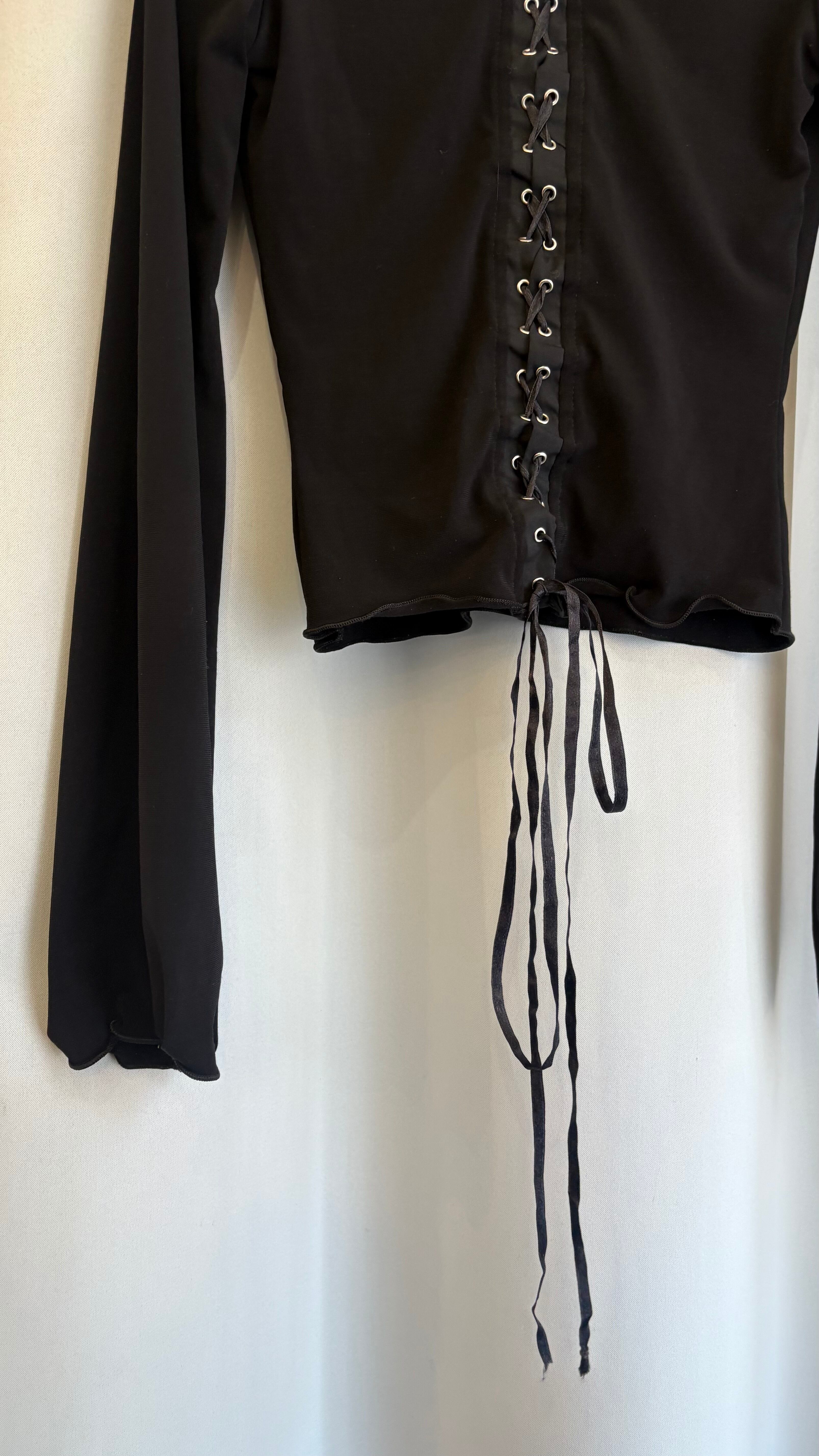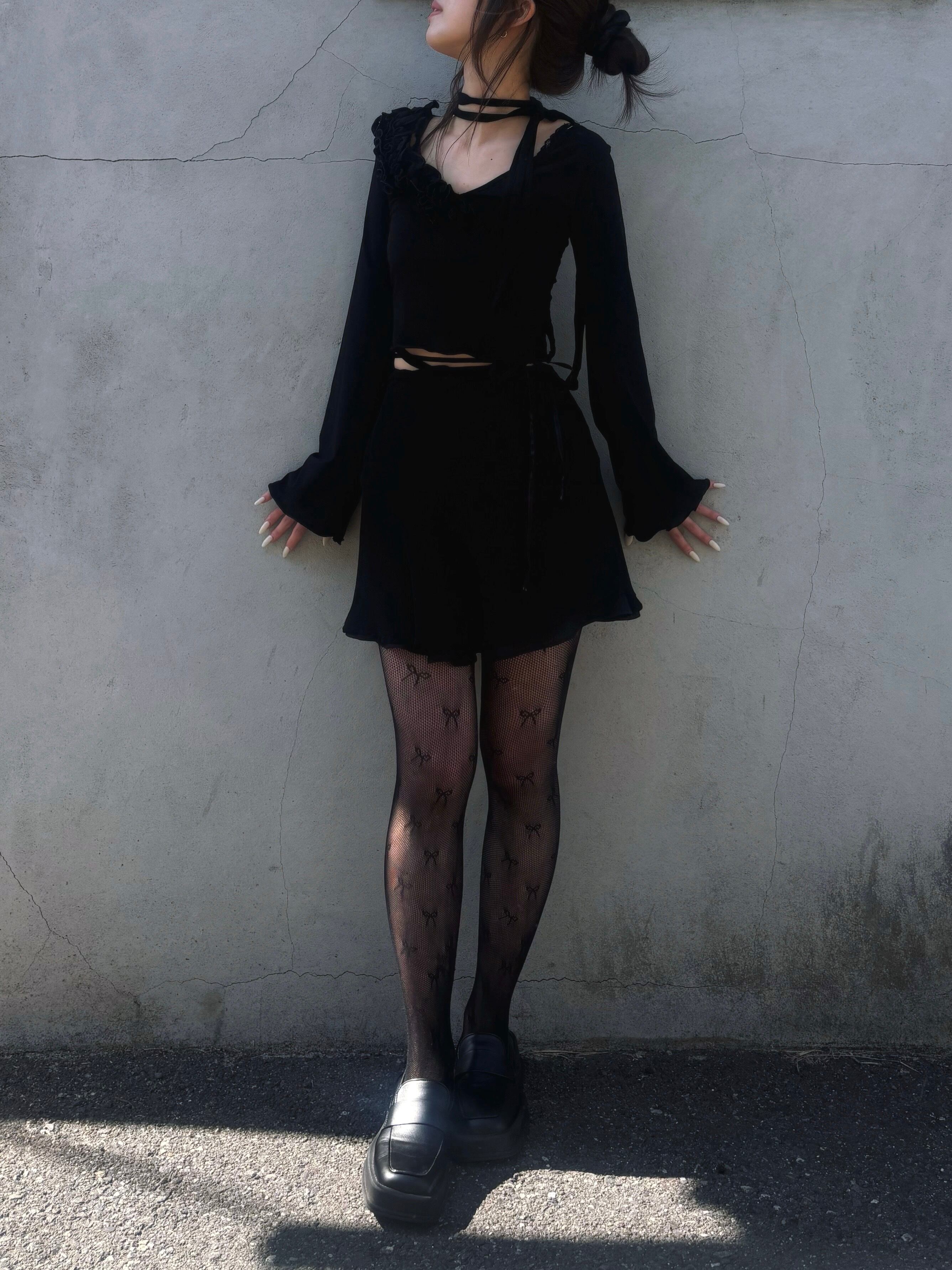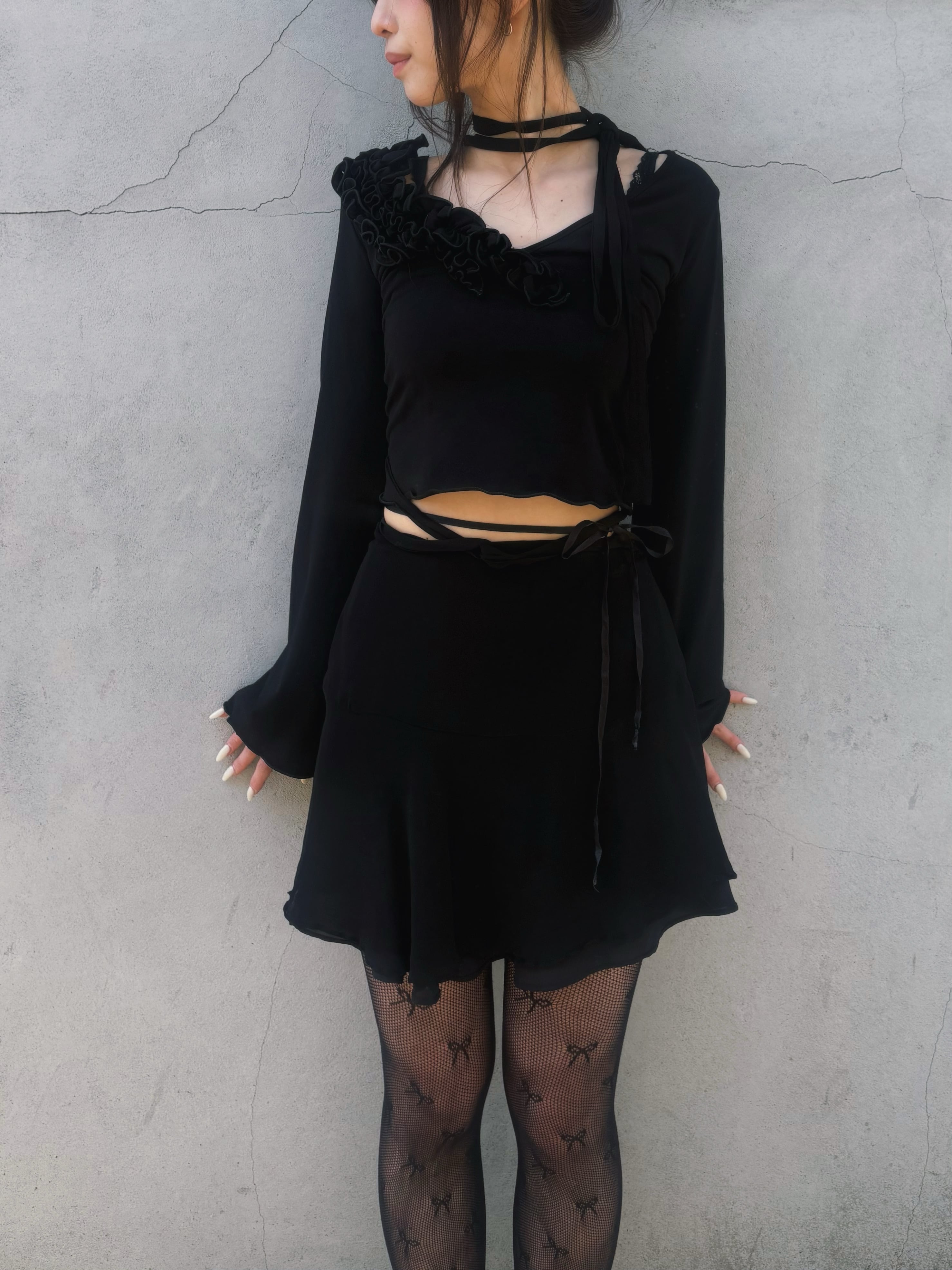 back lace up frill collar tops
