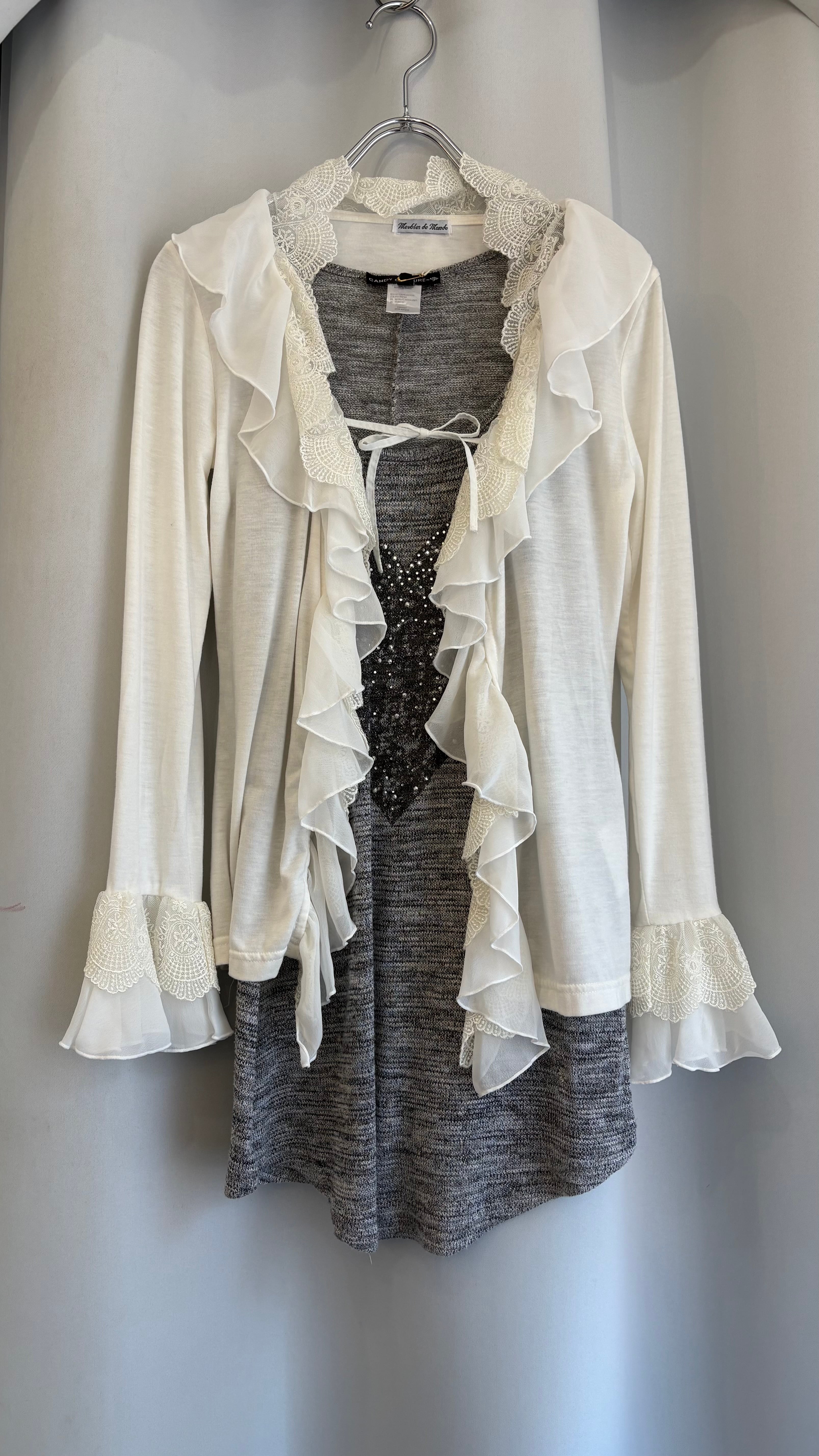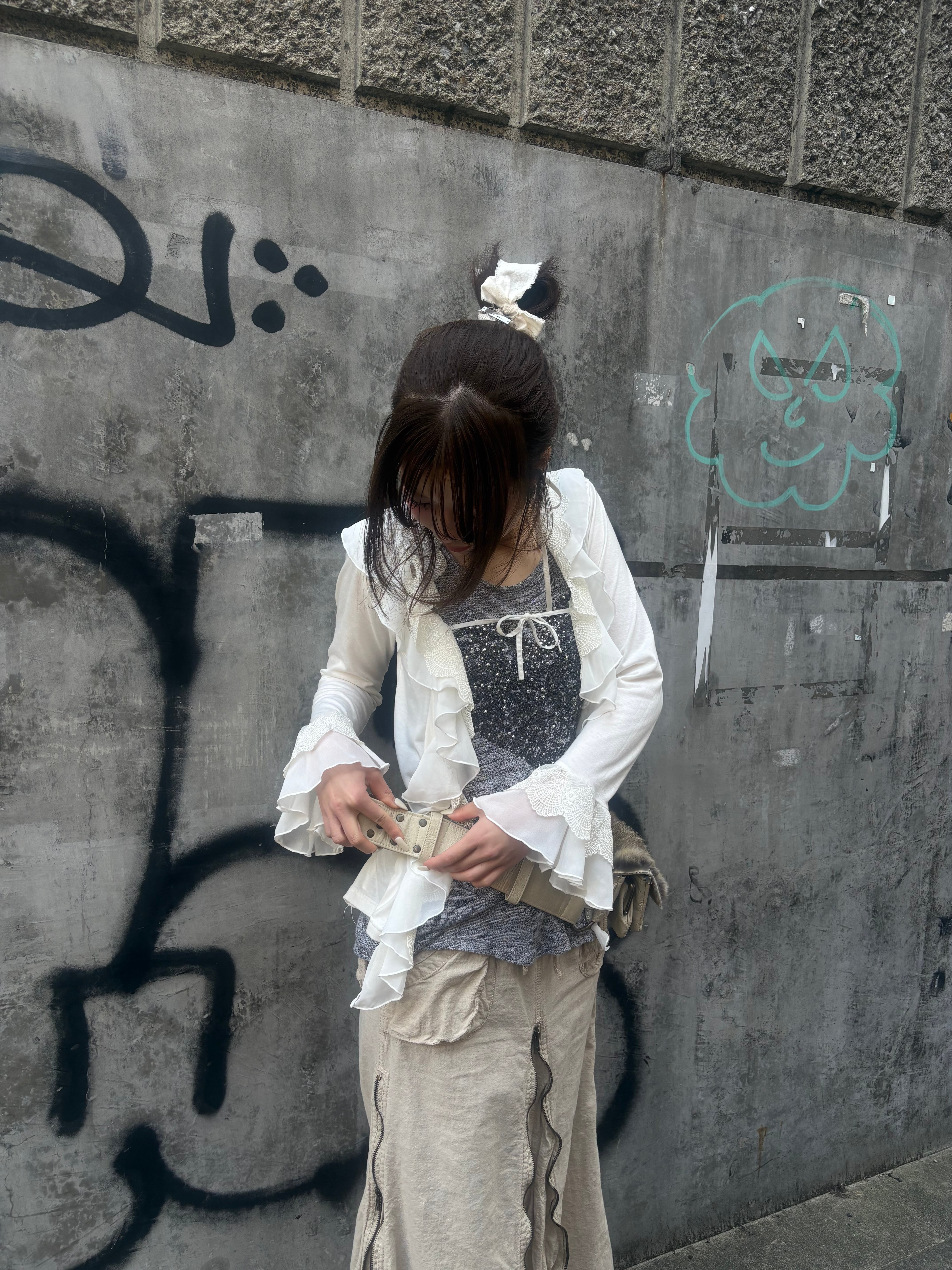 frill collar tie cardigan