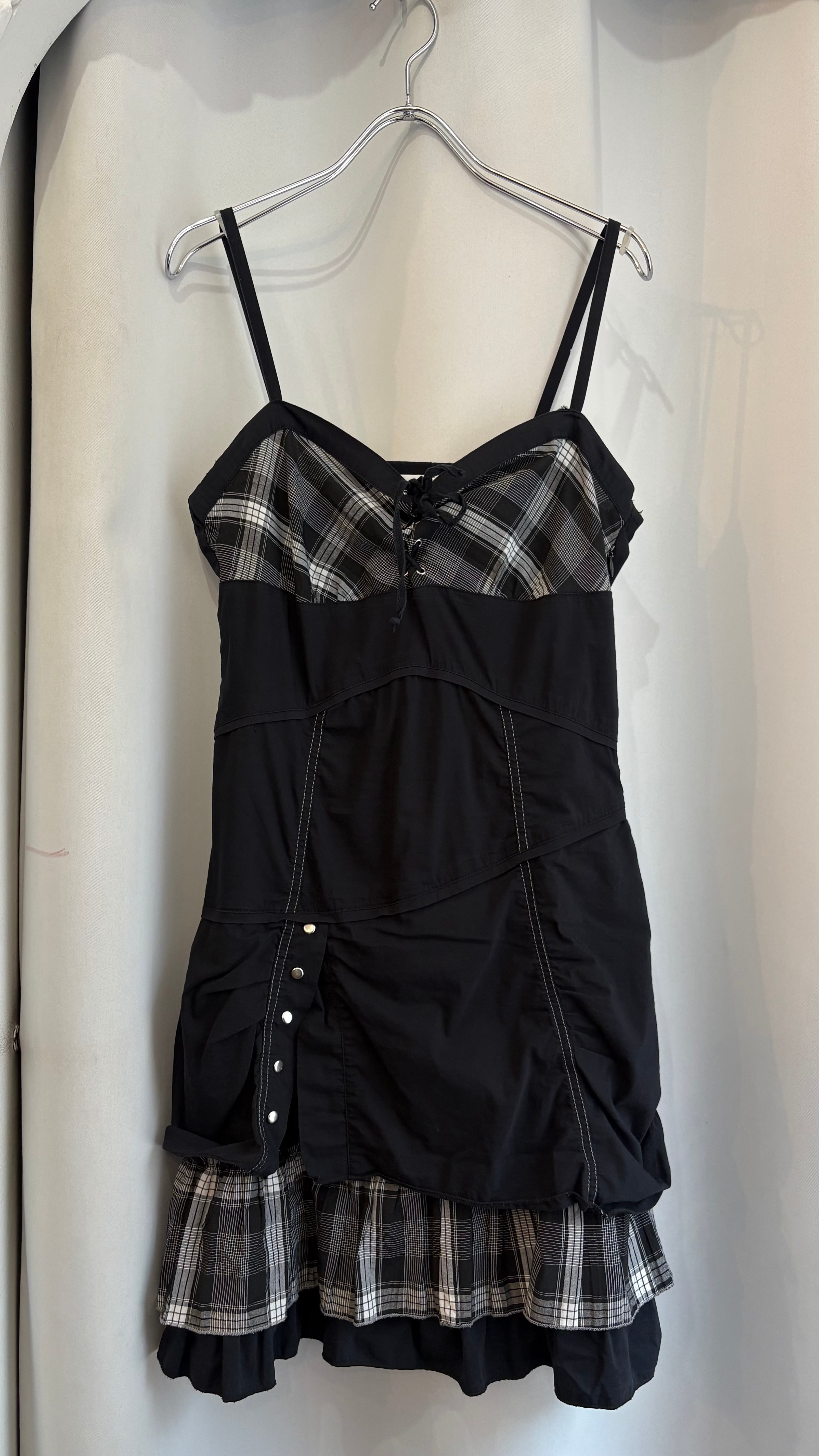 plaid switching camisole dress