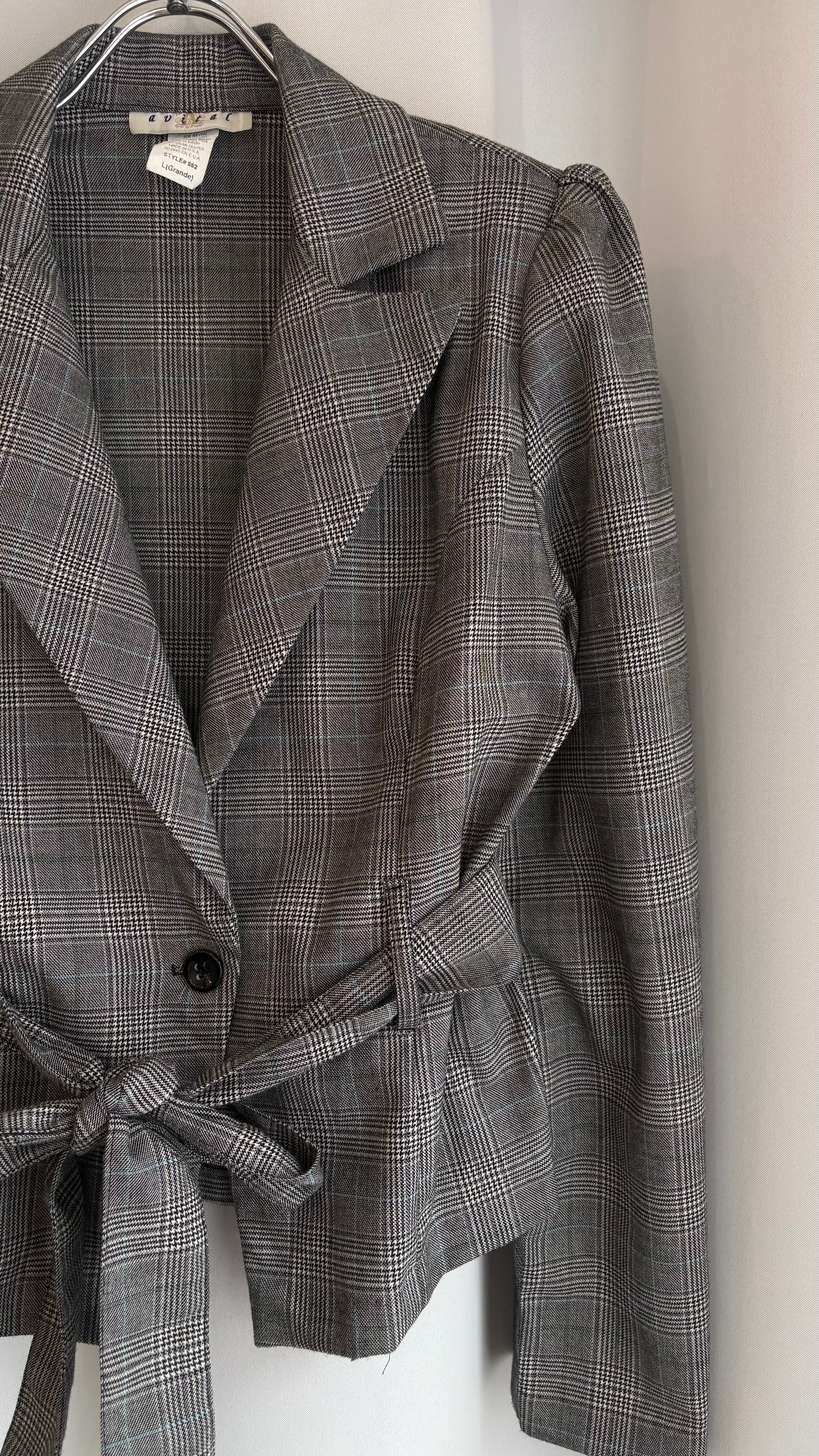 waist ribbon plaid jacket