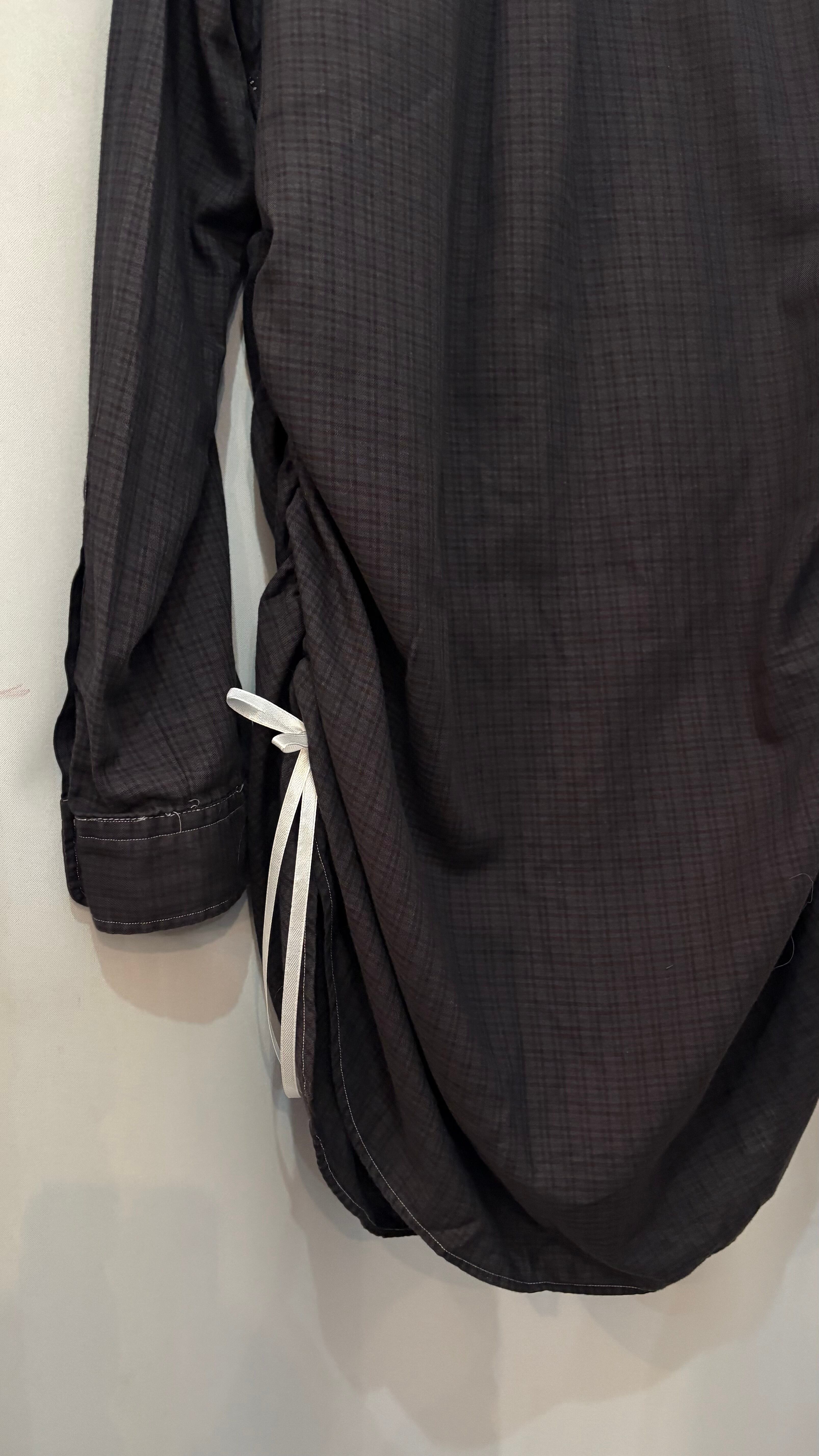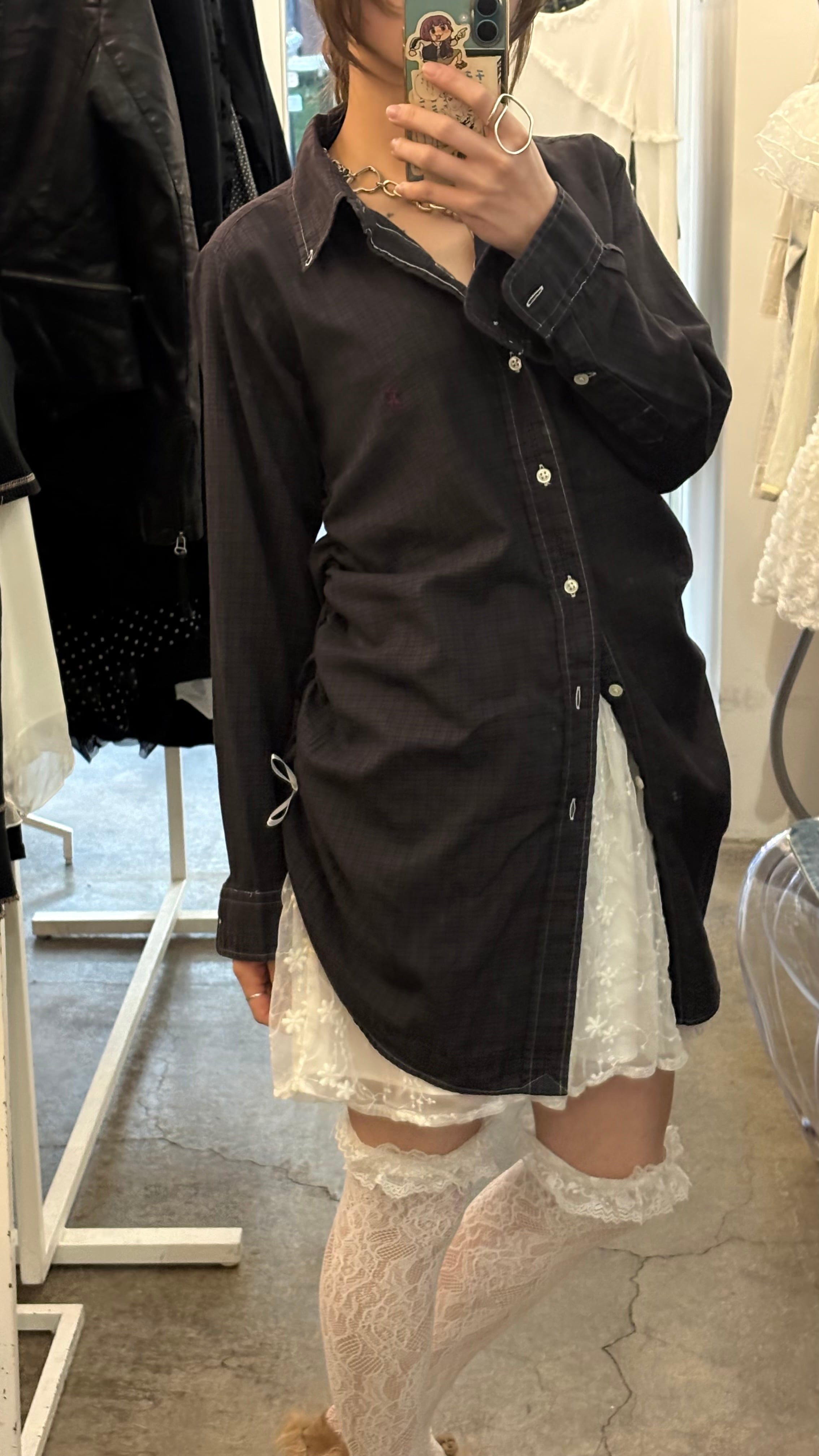 "remake"Ralph Lauren plaid side ribbon gather shirt