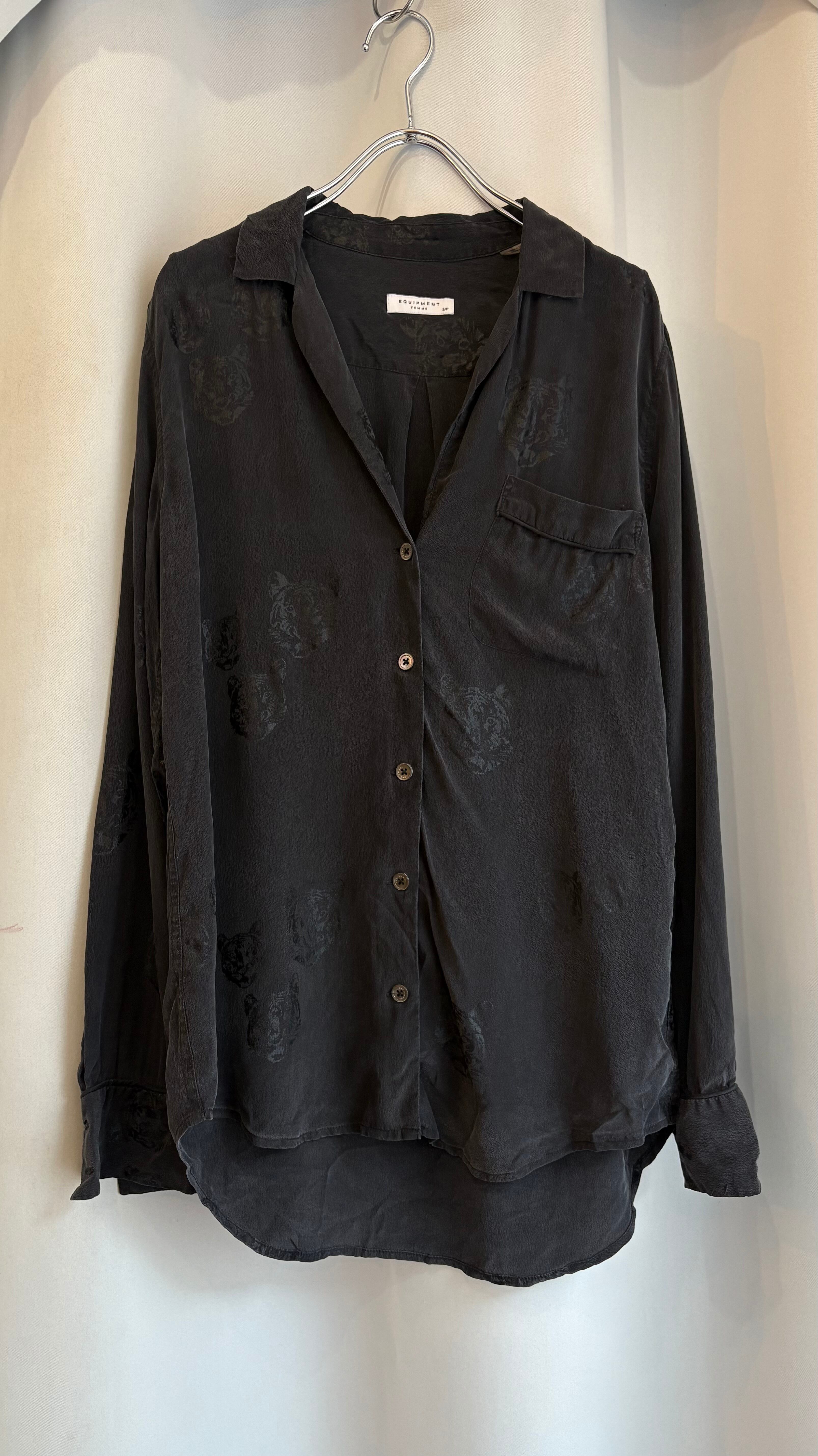 animal pattern open collar shirt