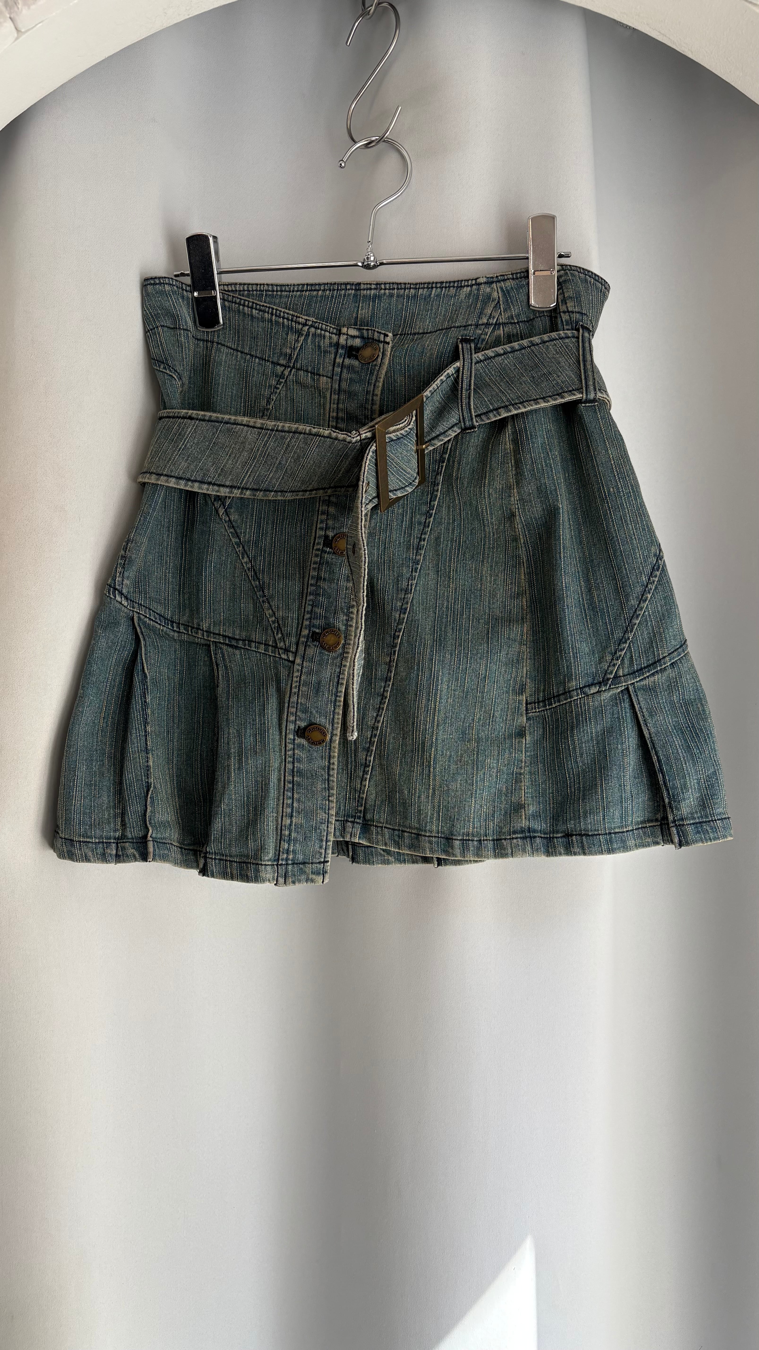 front button belt denim skirt