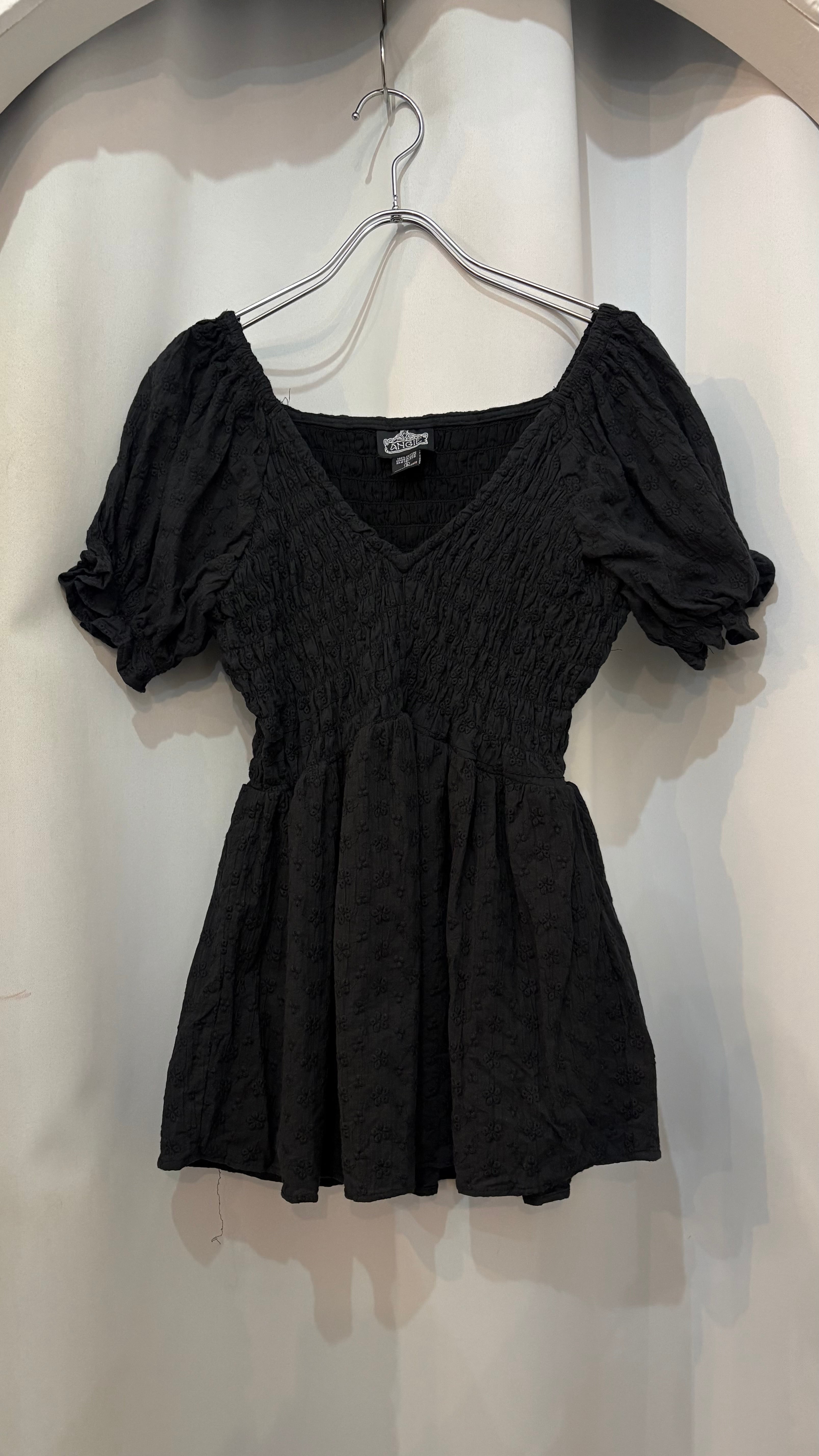 puff sleeve V neck gather tunic tops